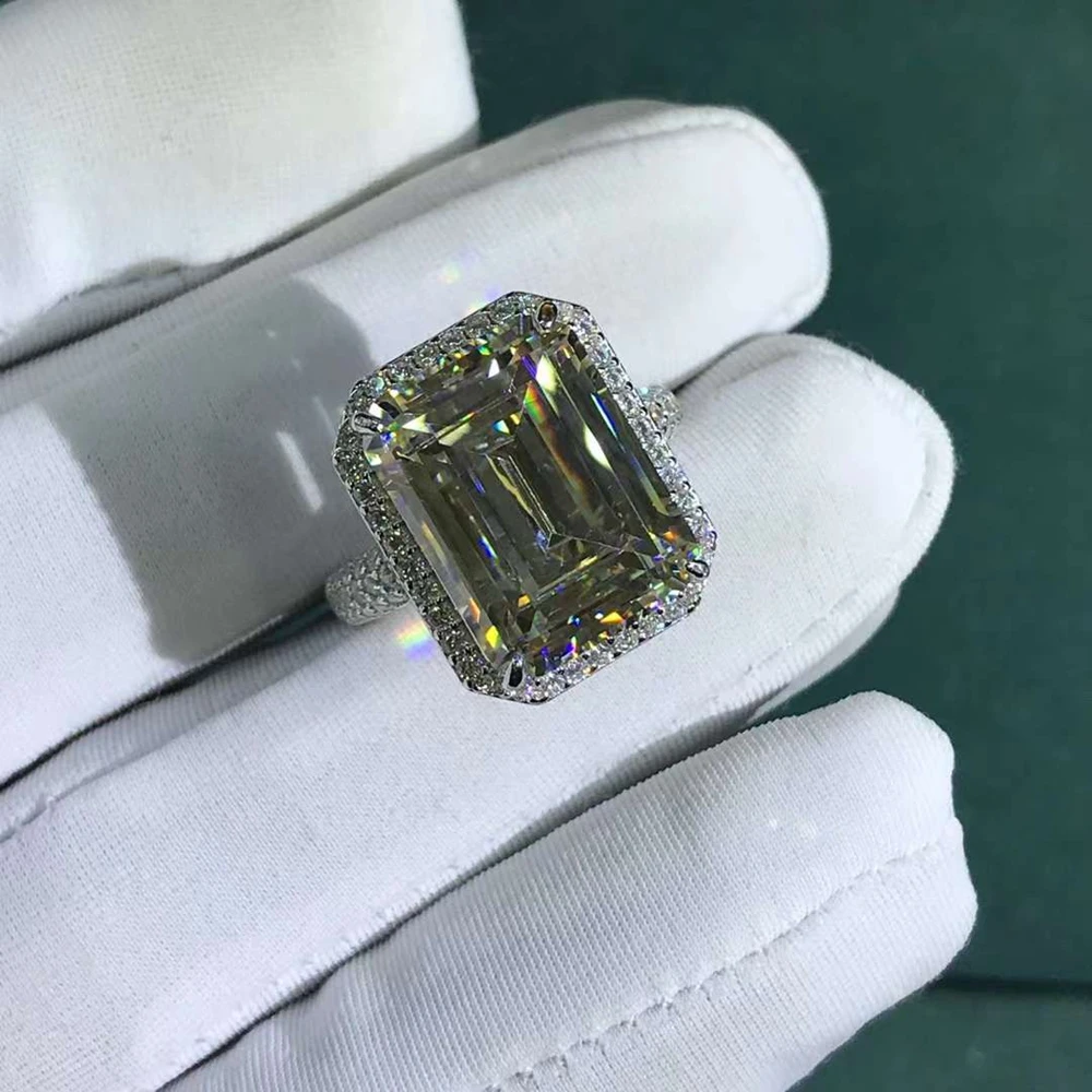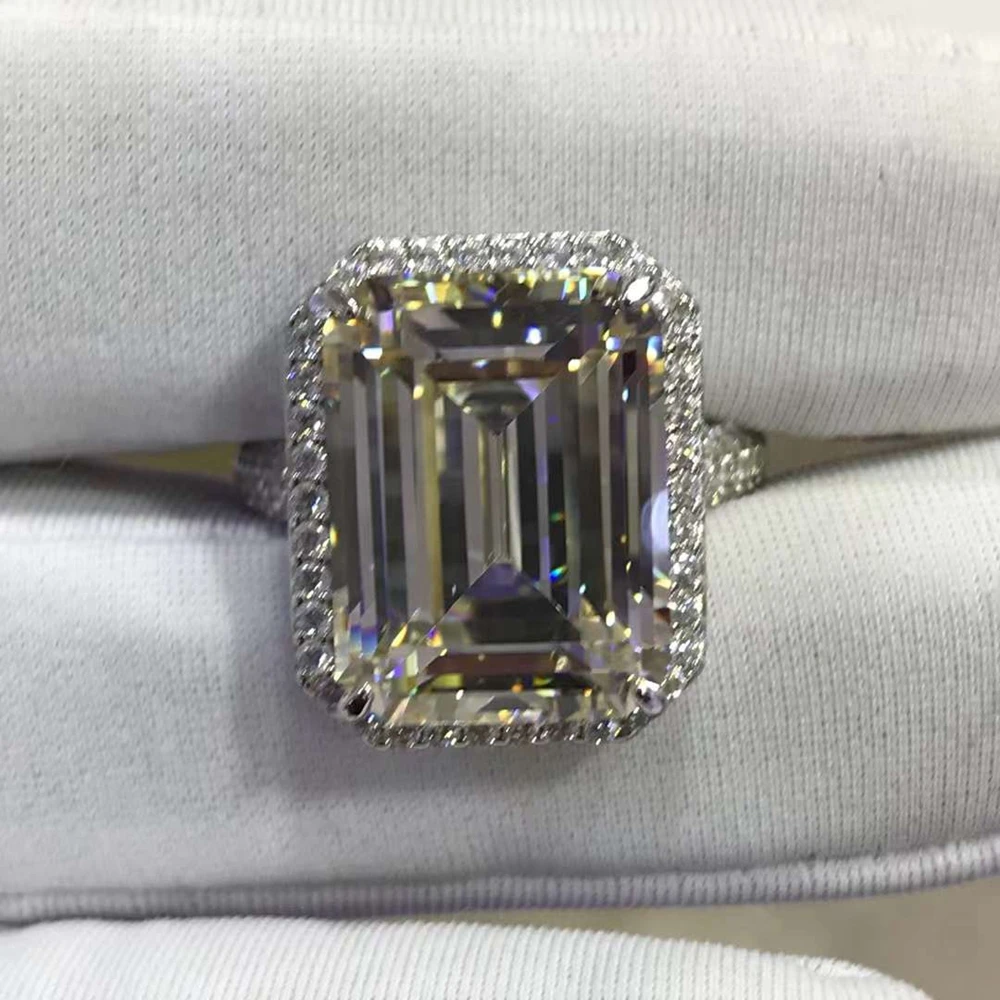 Classic 925 Sterling Silver VVS 3EX 10CT Emerald Cut Simulated Moissanite Gemstone Engagement Women Rings Fine Jewelry